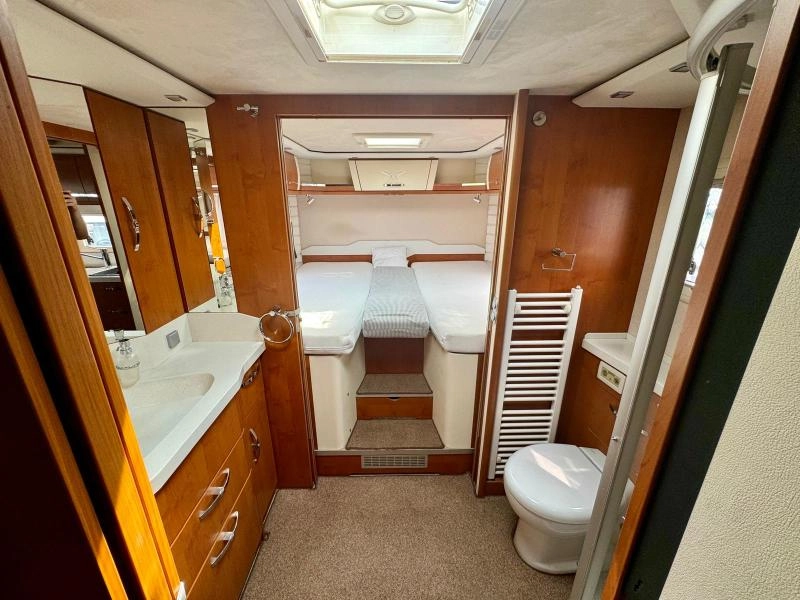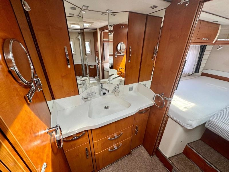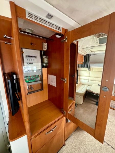 Energie: nástavbová baterie 2x210Ah GEL, solární panel 3x175Wp, měnič napětí 3000W Victron, benzínová centrála Dometic 3kW, EFOY 140, bateriový booster 90A